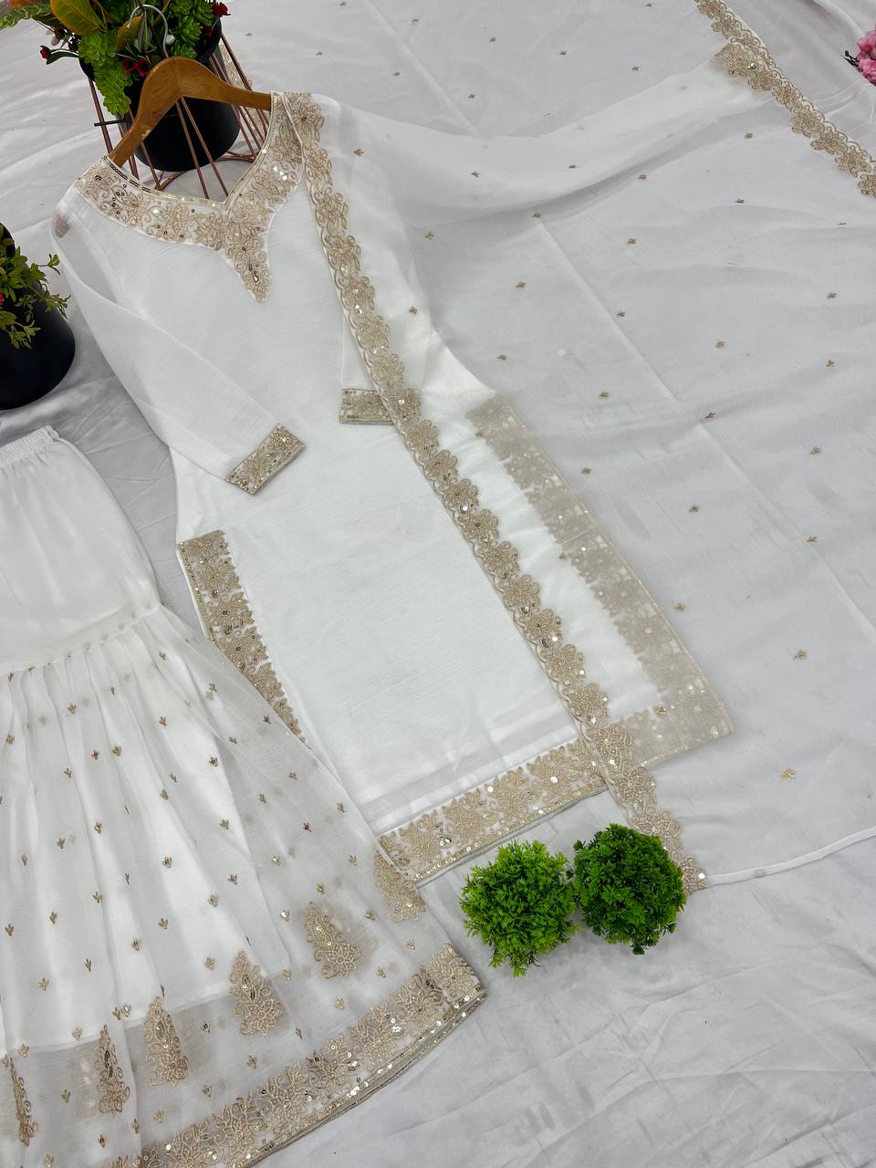 Cream Royale Mirror-Work Jari Silk Sharara Set Cream Royale Mirror-Work Jari Silk Sharara Set