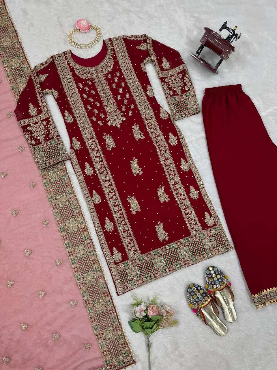 • Dupatta: Soft net, sequence & threadwork with fancy lace (2.2 meters)