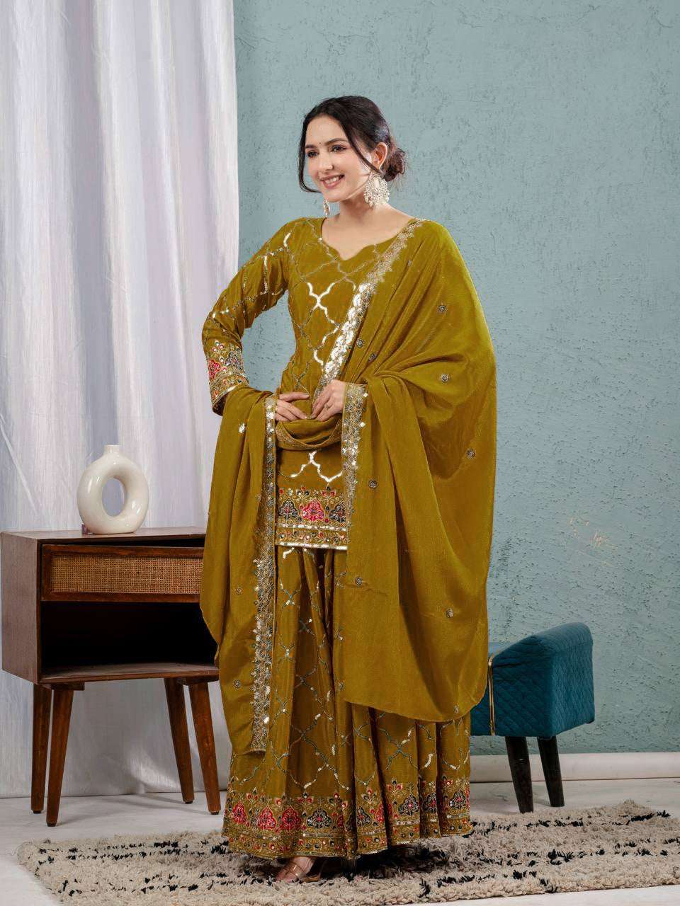 AAvaran Chinon Silk Embroidered Sharara Plazo Set